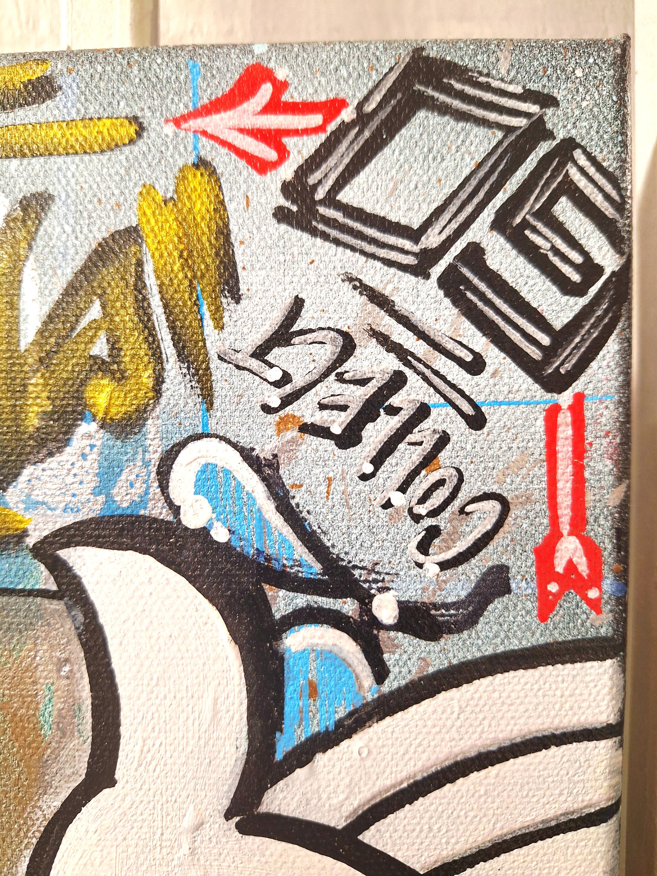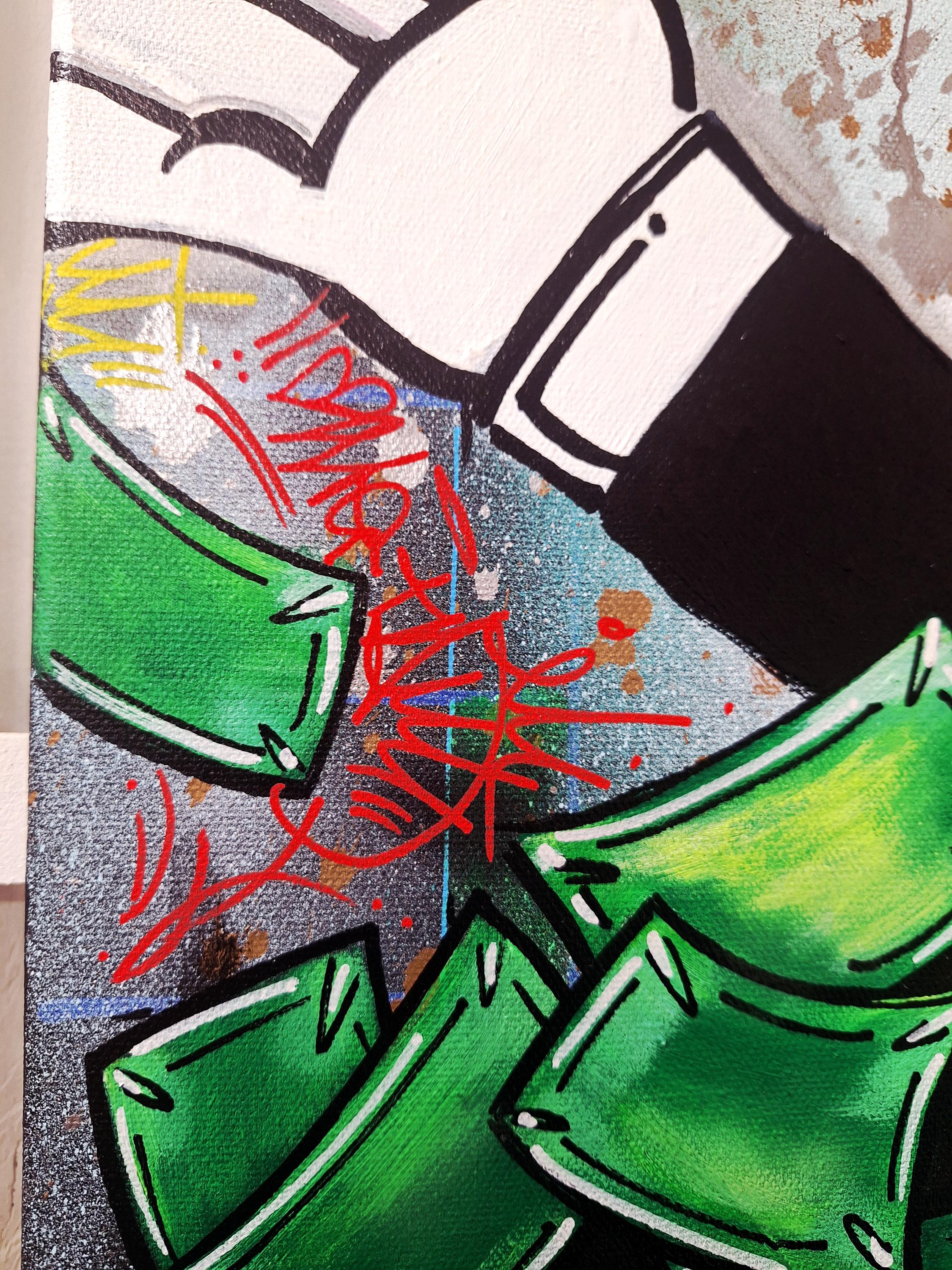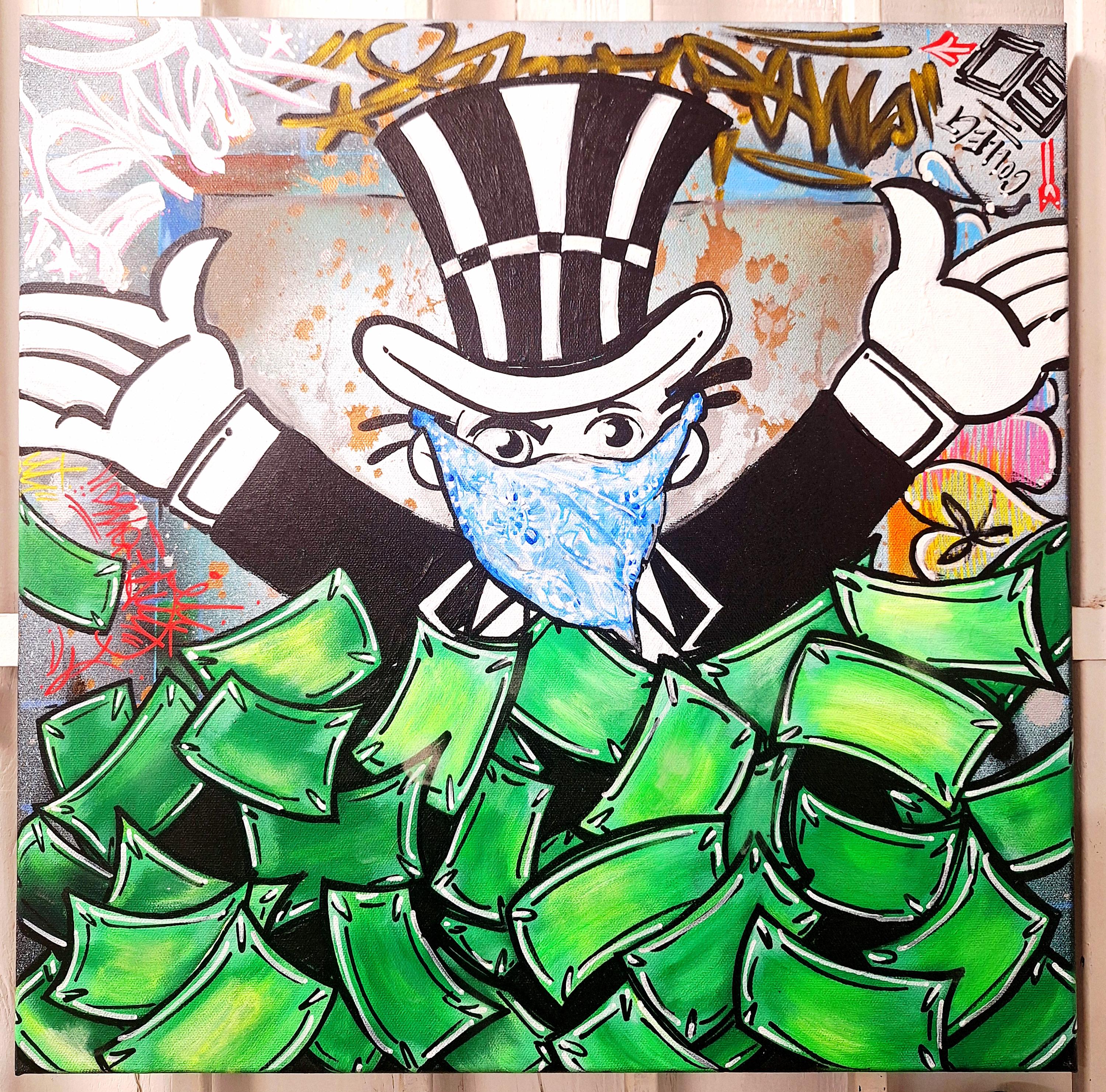 Make a statement and start conversations with your original one of a kind Monopoly themed, "There Goes the Neighborhood" canvas by OMEGA, of the legendary Under The Influence Los Angeles graffiti crew.