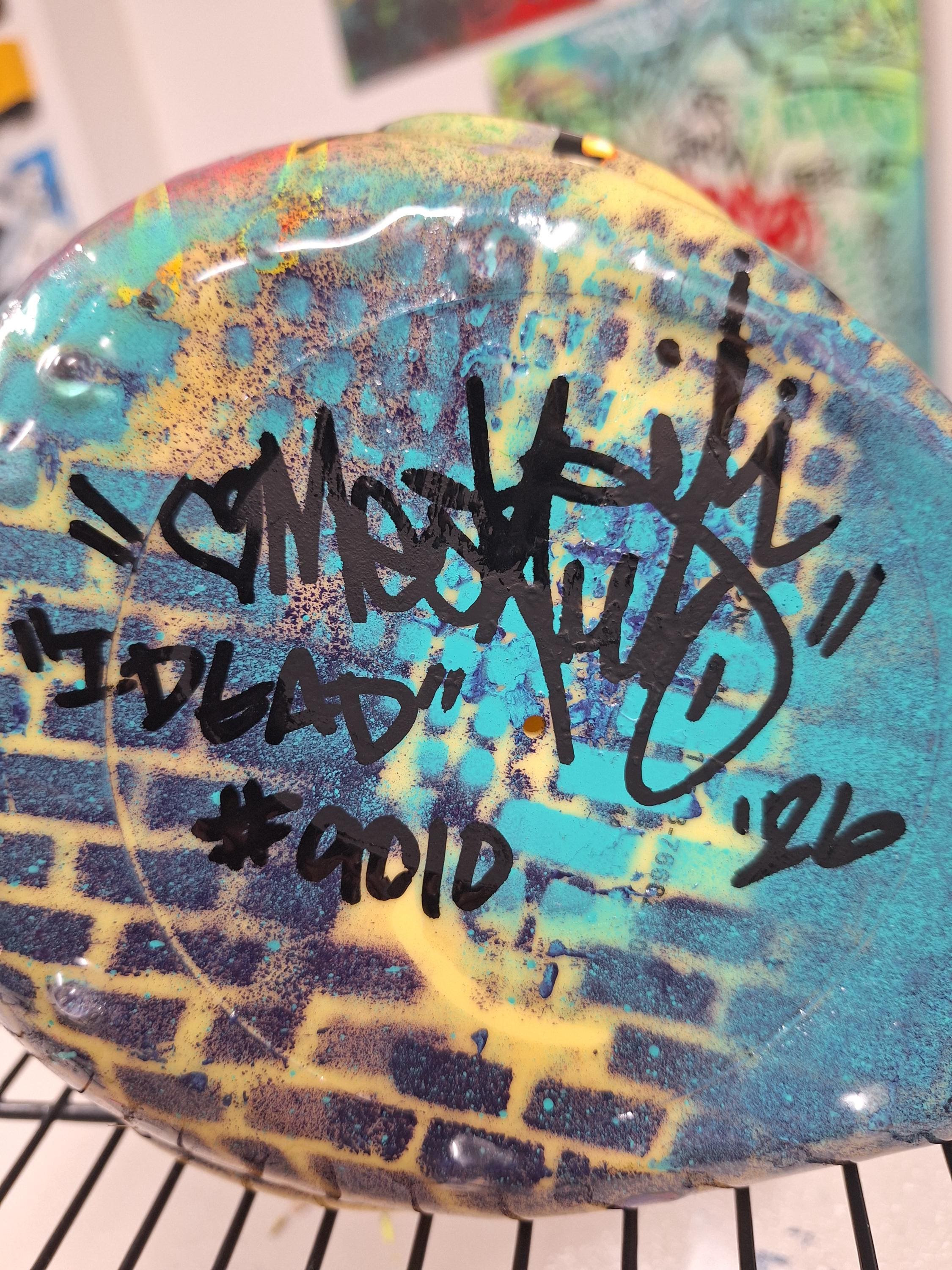 Attributes: "IDGAD" exclusive 7 piece series. Signed and numbered, # 9010. Resin coated. Original one of a kind art decor by "OMEGA" of the legendary Los Angeles art crew Under Thee Influence, U.T.I. Free shipping in the USA. Custom shipping box. Extra exclusive swag by OMEGA included.