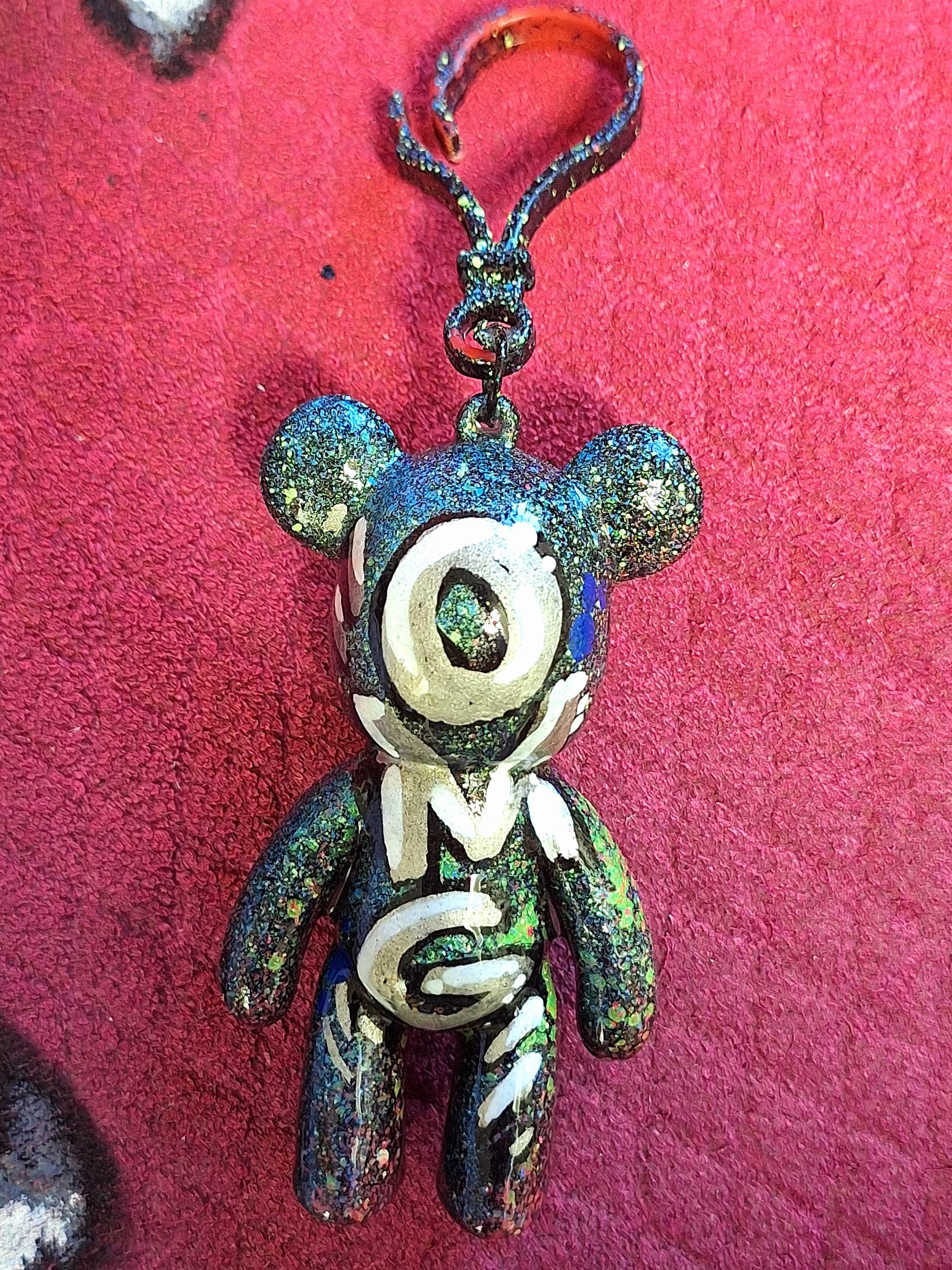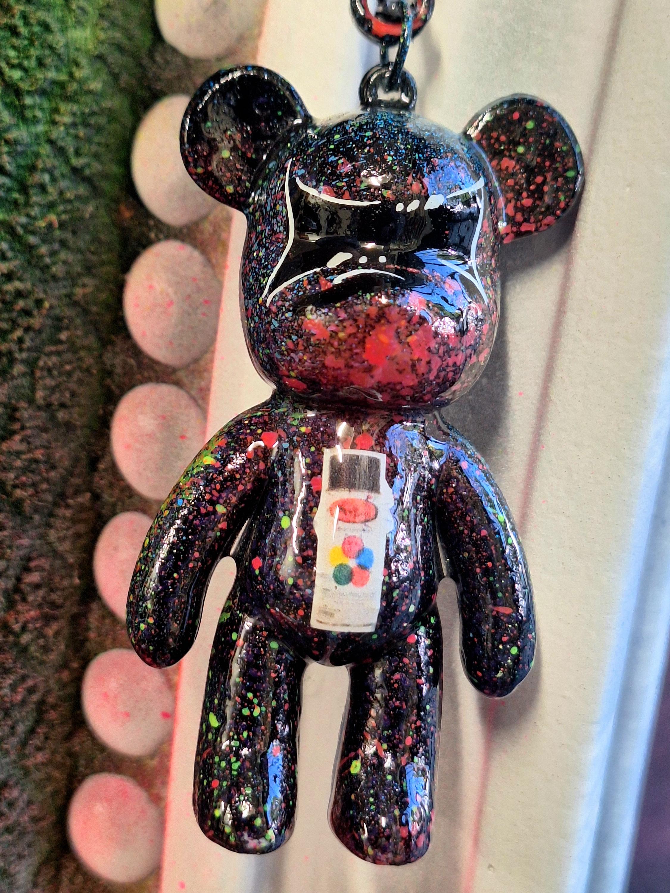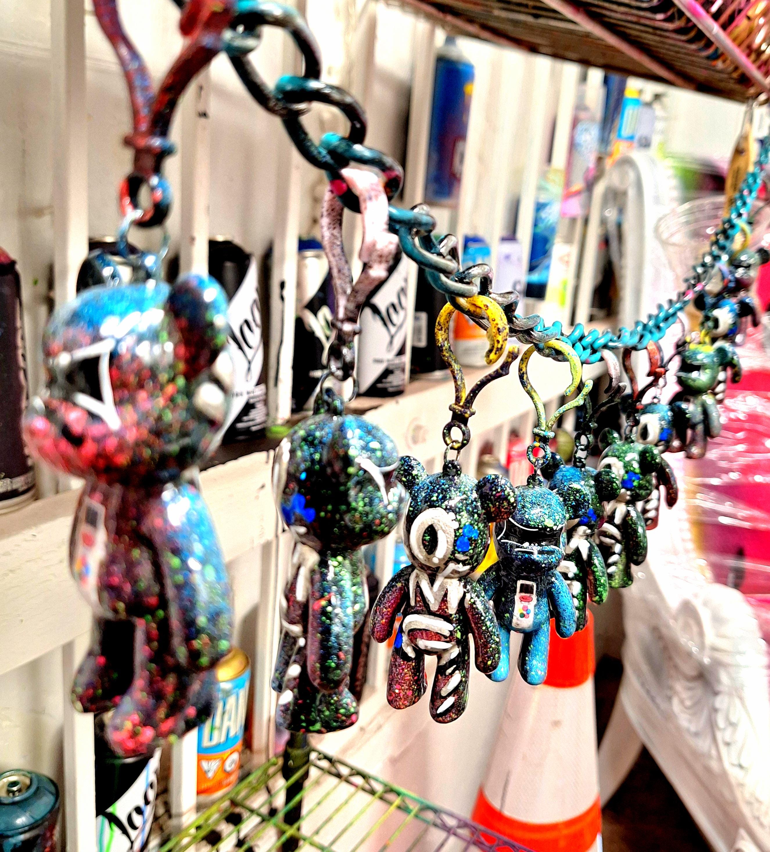 One of a kind, hand-finished graffiti bear keychain